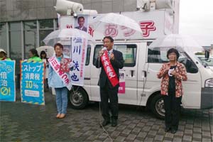 茨城県東海村で、川崎あつ子茨城5区候補と訴えました。
