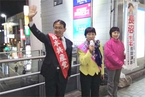 川越駅西口で、長沼ちね埼玉7区候補と一緒に訴えました。