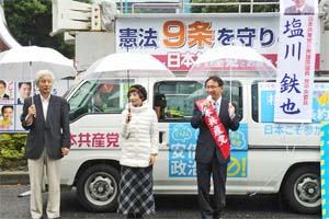 今日は終日、所沢市内で訴えます。午前中は3ヵ所で演説。