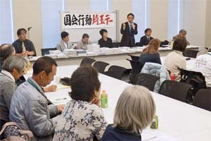 埼玉県民大運動実行委員会の国会要請行動であいさつ。紙智子参院議員も一緒です。