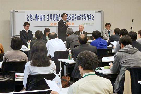 公務に働く臨時・非常勤職員の処遇改善をめざす院内集会に参加、あいさつしました。