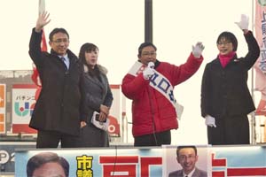 戸口佐一候補の応援再び/埼玉・上尾市議補欠選挙