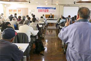 大木学市議の市政報告と質疑があり、そのあと「塩川議員ととことん語る」と題して、参加者と懇談。