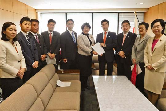 小池書記局長、高橋千鶴子衆議院議員はじめ、党国会議員団が要請。脱法行為が起こることのないように、法の趣旨の徹底や緊急の実態調査を行うことなどを求めました。
