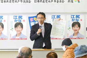 原発廃炉へ党勝利を/水戸/塩川議員を迎えつどい