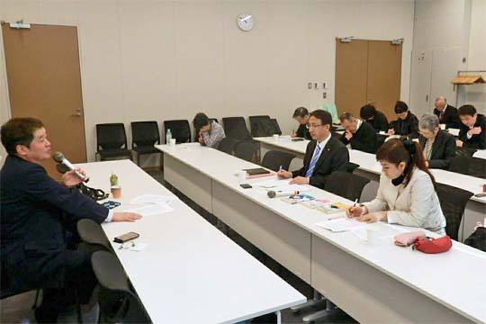 国会内で、尾林芳匡弁護士を講師に迎えての「PFI・コンセッションを考える」学習会。