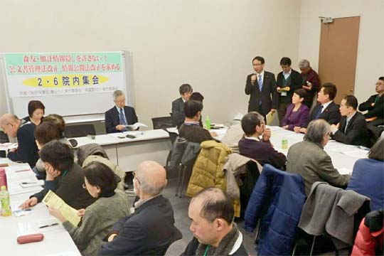 森友・加計情報隠しを許さない!公文書管理法改正、情報公開法改正を求める『2・6院内集会』に参加。