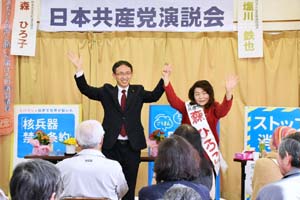 栃木県高根沢町で日本共産党演説会。4月10日告示の高根沢町議選挙、森ひろ子町議が7期目をめざします。