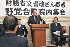 財務省文書改ざん/与党は疑惑解明に応じよ/野党合同院内集会に出席