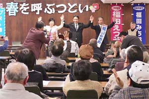 栃木県日光市の日本共産党市委員会は10日、市内の日光総合会館で、来月の市議選(8日告示、15日投票、定数24、4減)の勝利をめざす決起集会「舂を呼ぶつどい」を開き、塩川鉄也衆院議員が、福田えつ子、福田みちお両市議の必勝を訴えました。