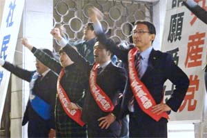 日本マスコミ文化情報労組会議の「安心できる暮らしを実現する請願デモ!大幅賃上げ・労働法制改悪反対!安倍改憲阻止!戦争法・共謀罪廃止!」のデモのみなさんを激励。