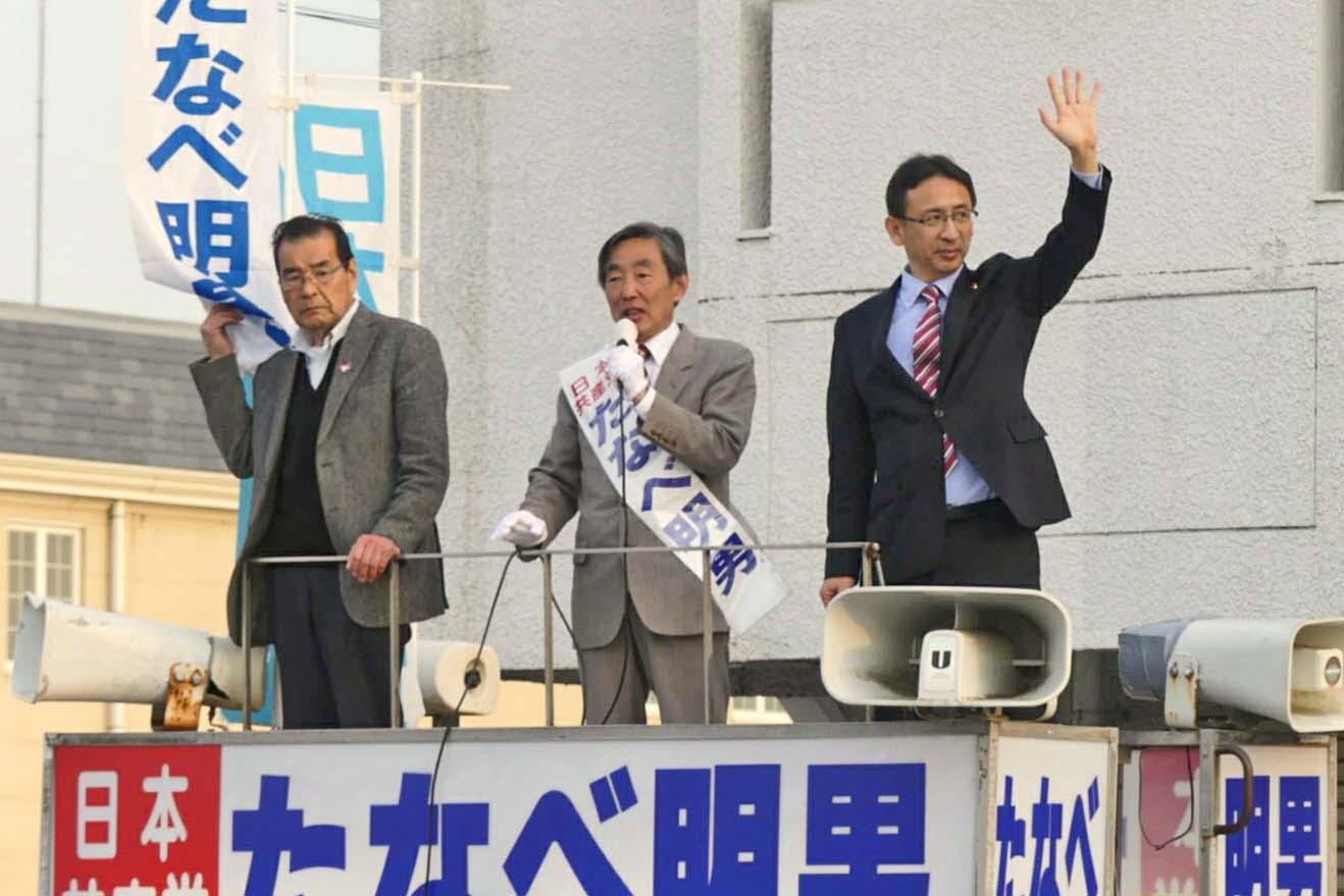 車の中からの応援がたくさん!安倍首相の国政私物化に怒りが広がっています。何としても、たなべ明男候補の押し上げを!