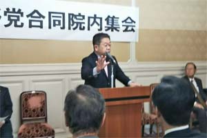 森友疑惑徹底追及、安倍内閣退陣を求める野党合同院内集会に参加。6野党が一同に会した決起集会です。
