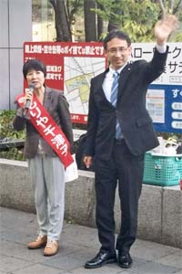 北関東ブロックのいっせい宣伝行動。武蔵浦和駅前で、もりや千津子さいたま市議、党後援会のみなさんと一緒に取り組みました。