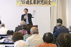 埼玉革新懇総会であいさつ。モリカケ、セクハラ、自衛隊日報隠ぺい、「働き方」データねつ造など、相次ぐ不祥事で、安倍政権は「存立危機事態」に。 国会では野党共闘が前進。市民と野党の共闘の力で、安倍政権を退陣に追い込もう! オール埼玉総行動実行委員会の野田静枝さんもごあいさつ。