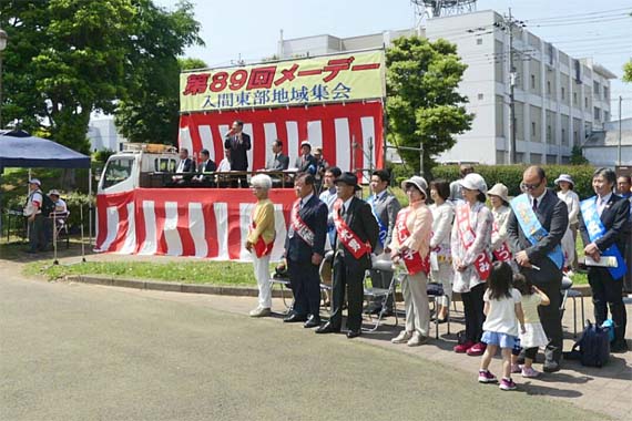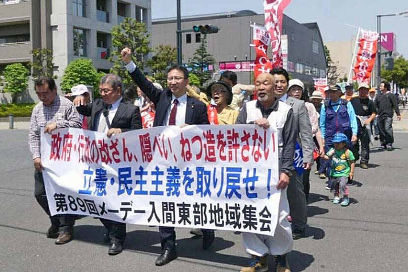 メーデー入間東部地域集会に参加、あいさつしました。前原県議はじめ、ふじみ野市・富士見市・三芳町の議員団が参加。民進党、社民党の代表も参加、あいさつしました。