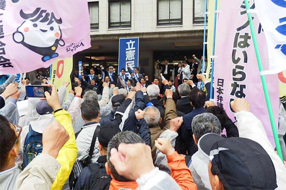 カジノ解禁に反対を/国会パレード参加者を激励
