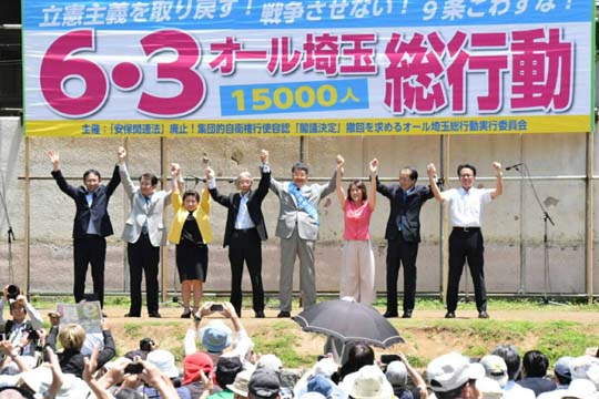 北浦和公園で行われた「立憲主義を取り戻す!戦争させない!9条こわすな!6・3オール埼玉総行動」に1万3500人が参加!