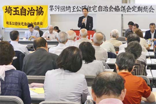 埼玉公団住宅自治会協議会定期総会に出席し、あいさつ。