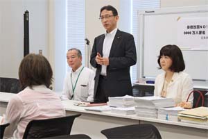 塩川氏が国会情勢を報告し、「働き方改革」一括法案やカジノ実施法案などを押し通そうとする安倍政権を批判。「みなさんの粘り強い署名運動が、市民と野党の共闘を広げ、前進させる力になっています。3000万人署名を何としても達成し、安倍政権を退陣に追い込みましょう」と呼びかけました。