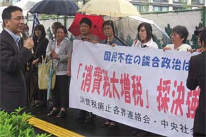民自公談合3兄弟の増税大連合に対し、消費税増税反対の国民大連合で廃案に追い込もう。