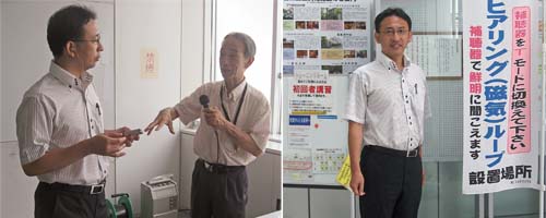 先進地の東京都台東区に視察に。会場は生涯学習センター。館内にはヒアリングループ対応を示すのぼり旗があり、貸し出し用ループが置かれている。台東区では、高齢者実態調査において聴力障害の実態を把握。聞こえで悩む区民が約8千人(高齢者の2割)にのぼることがはっきりした。台東区議会事務局が東京23区内のヒアリングループ実態調査を実施。また区施設では窓口ループが実現している。