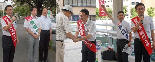 公約違反で、国民の多くが反対している消費税増税を野田首相がおし進めようとしていることに対し、共産党など7野党が内閣不信任決議案を提出した。しかし、民主党・自民党・公明党が増税法案の早期成立で合意したことは暴挙だ。国民の声を集めて廃案まで全力をあげる。増税勢力には解散・総選挙で審判を下そう。