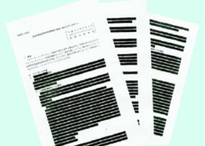 うち5枚はすべて塗りつぶされるなど、全ページの大半が黒塗りとなっており、内容が全くわからない。