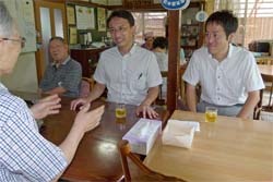 ミニデイホーム「あったか村」。柴岡ゆうまさんと一緒に訪問。民家を改修して大人数が集えるようにしました。利用する高齢者たちが、ボランティアのスタッフ手作りの昼食を食べたり、歌を歌ったり、楽しく過ごすといいます。中島「村長」さんのお話がとてもいいと評判です。でもボランティアの自発的な拠出など、財政的にはやりくりが大変だとのこと。このようなNPO法人が地域で活躍できるように、税財政面での支援策の拡充のために力を尽くしたい。