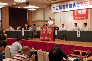 国家公務員総人件費2割削減を撤回させ、国民のための労働行政を守り、発展させるなどとした運動方針を掲げる全労働の奮闘に期待する。