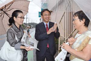 行動中に出会った知り合いとも、尖閣諸島問題、年金や消費税などで、対話が進んだ。「年金暮らしにとって消費税が上がったら厳しい」などの声も寄せられた。
