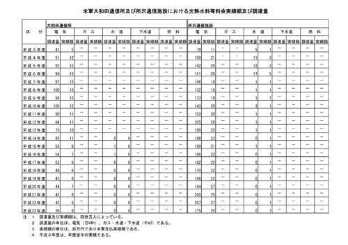 防衛省から「米軍大和田通信所及び所沢通信施設における光熱水料等料金実績額及び調達量」に関する年度別一覧表が提出された。
