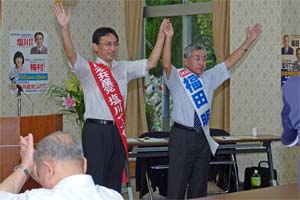 衆院茨城5区の演説会が日立市内で開かれ、茨城5区の福田明さんと一緒に訴えた。