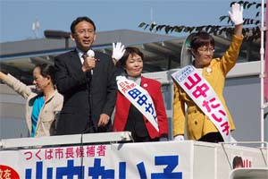 茨城・つくば市/市議選・市長選の告示で応援に