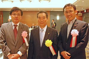 全国離島振興協議会会長の白川博一・長崎県壱岐市長(中央)と井上参院議員(左)