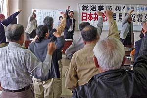 総選挙で650万票、議席倍増、北関東で65万票、2議席の実現に全力を挙げよう。1996年の総選挙では、15議席から26議席に躍進。当時の自民・新進の二大政党づくりに痛打を与えた。いまや自民・民主の二大政党づくりの破たんは明らか。古い政治の延命装置である二大政党体制を打ち砕くためには、国政に衝撃が走るような日本共産党の躍進が必要。なんとしても議席倍増を勝ちとろう。
