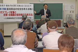 埼玉県狭山市で、第12回基地周辺の安全を考える集いが開かれ、オスプレイ配備と低空飛行問題で講演。集いは1999年の入間川河川敷への自衛隊機墜落事故を風化させまいと市民団体が毎年開いている。
