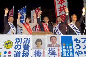 午後3時50分の解散の直後に浦和駅頭に駆けつけて、梅村さえこさんらと有権者に訴え。「民主党には裏切られ、でも自民党には戻ってほしくない、どうしよう」と、お考えの皆さんに「提案し、行動する党。日本共産党」をぜひおすすめしたい。