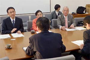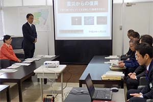 鹿嶋市では、担当者から復旧状況や復興交付金事業計画の説明を受け、「もっと使い勝手のよい補助制度があれば助かる」と力説した。