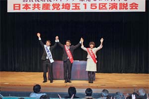 さいたま市南区で、埼玉15区の演説会が開かれ、比例北関東ブロックの梅村さん、埼玉15区の小久保さんとともに訴えた。