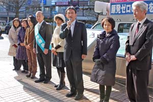 西武鉄道所沢駅前で、参院埼玉選挙区の伊藤岳さん、やぎした礼子県議らとともに、新年の街頭からあいさつ。