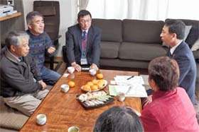 夜は、党宮城県議団、仙台市議団と懇談。被災者生活再建支援金の増額や復興公営住宅の入居要件の緩和など切実な要望が寄せられた。