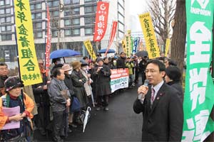 国民大運動実行委員会、安保破棄中央実行委員会、中央社会保障推進協議会が主催した国会前行動で国会報告。