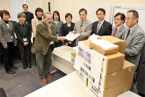 安保破棄中央実行委員会が、沖縄に強行配備された米軍機オスプレイの配備撤回と低空飛行訓練の中止を求める署名の提出集会に、穀田・笠井衆院議員、井上参院議員らとともに出席。約7万2000人分を受けとった。提出した署名は、のベ23万6000人分にのぼった。