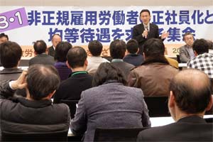 全国から100人が参加し、非正規雇用労働者の深刻な実態が語られるとともに、待遇改善を求める声が相ついだ。