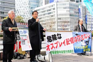 安保破棄中央実行委員会と東京実行委員会が、新宿駅前でおこなった、オスプレイ配備の撤回の署名と沖縄米軍普天間基地の無条件撤去を求めた宣伝行動に参加した。