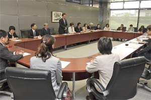 西武ホールディングスに対する株式公開買い付け(TOB)を開始した米投資会社サーベラスが、西武国分寺線、秩父線、山口線、多摩川線、多摩湖線の5路線の廃止、球団の売却、8%の人員削減などを提案。西武側が、TOB反対を表明している問題で、日本共産党埼玉県委員会、県議団、西武鉄道沿線の地方議員らとともに、西武ホールディングスと西武鉄道に、路線存続などを要請した。