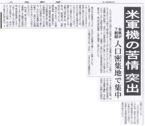 米軍機の苦情突出/本県が7割超/人口密集地で集中