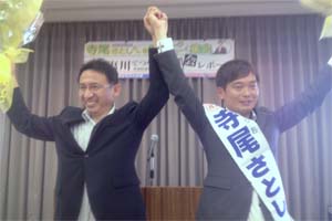 被災者支援の基本は個人のくらしの復興であり地域の復興。浦安のみなさんの運動と日本共産党の論戦が政治を動かした。アベノミクス、TPP、憲法、歴史問題、原発など暴走する安倍内閣。政権与党幹部からも「自共対決」の声があがっている。参院選で比例5人の必勝、千葉選挙区で寺尾さんの押し上げに力をかしてください。