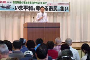 飯能市で行われた「基地周辺のくらしと安全を考えるつどい」に出席。「危険なオスプレイ配備と米軍機の低空飛行問題」について講演。